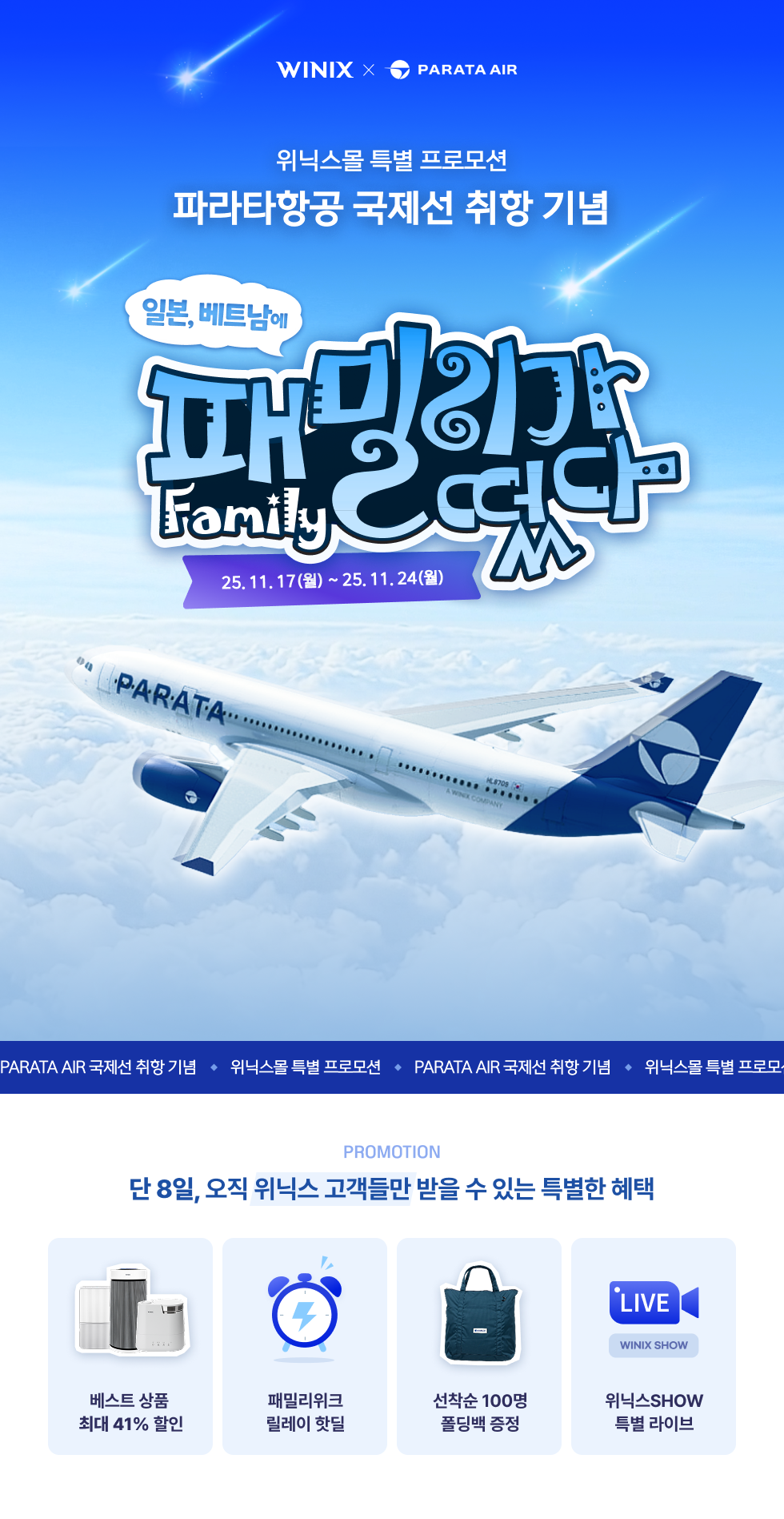 패밀리가 떴다! PARATA 국제선 취항! 2025.11.17 ~ 2025.11.24